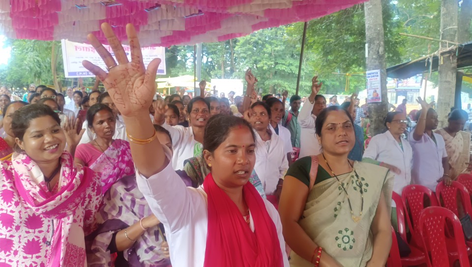 द ब्लेज ई न्यूज,जशपुरनगरः दस सूत्रिय मांगों को लेकर अनिश्चितकालिन हड़ताल में बैठे राष्ट्रीय स्वास्थ्य मिशन के कर्मचारियों ने ड्यूटी पर वापस लौटने से इंकार कर दिया है। मंगलवार को शहर के रणजीता स्टेडियम में हड़ताली कर्मचारी डटे रहे। उन्होनें स्वास्थ्य विभाग द्वारा ड्यूटी ज्वाइन करने के लिए जारी किये गए नोटिस को दरकिनार करते हुए अपने मांगों के समर्थन में जमकर नारेबाजी की और मांग पूरी होने तक आंदोलन में डटे रहने का संकल्प दोहराया। उल्लेखनिय है कि स्वास्थ्य विभाग ने एक नोटिस जारी कर हड़ताली कर्मचारियों को ड्यूटी पर वापस लौटने का अल्टीमेटम दिया है। ड्यूटी ज्वाइन ना…